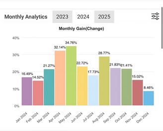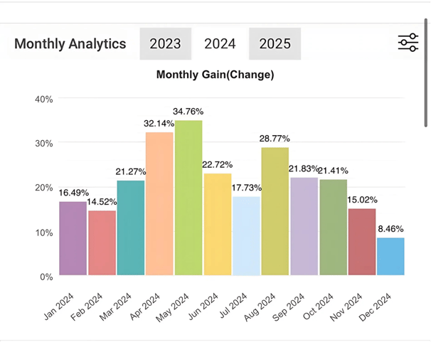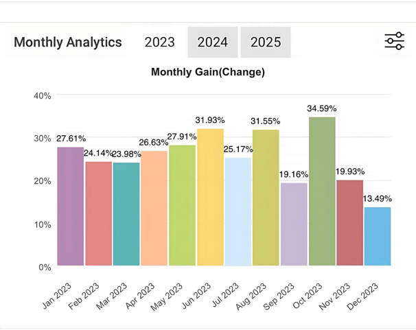 ESTADÍSTICA DE LA ESTRATEGIA: 2 años ininterrumpida activa. Ha salido positivo todos los meses desde su lanzamiento, hasta la fecha no registra ningún mes en negativo.